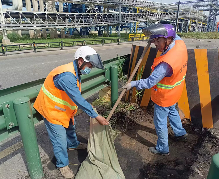 示范引領處處呈現。節前環境大治理工作開展以來,全公司下掀起“大干15天、再創新佳績”勞動競賽活動。道路一線黨員示范作用有力得以彰顯。黨員張學軍、龔飛、姚功、陳小軍等同志工作中爭先恐后,臟活累活沖鋒在前,呈現出熱火朝天的繁忙工作景象。園區班組、女子班組突擊清理道路兩邊的雜草、岔路口泥土,大型車輛拋灑石子。清理路面達3000多米長,清理打包深秋梧桐落葉達100多袋,確保行車安全與環境治理同步進行。