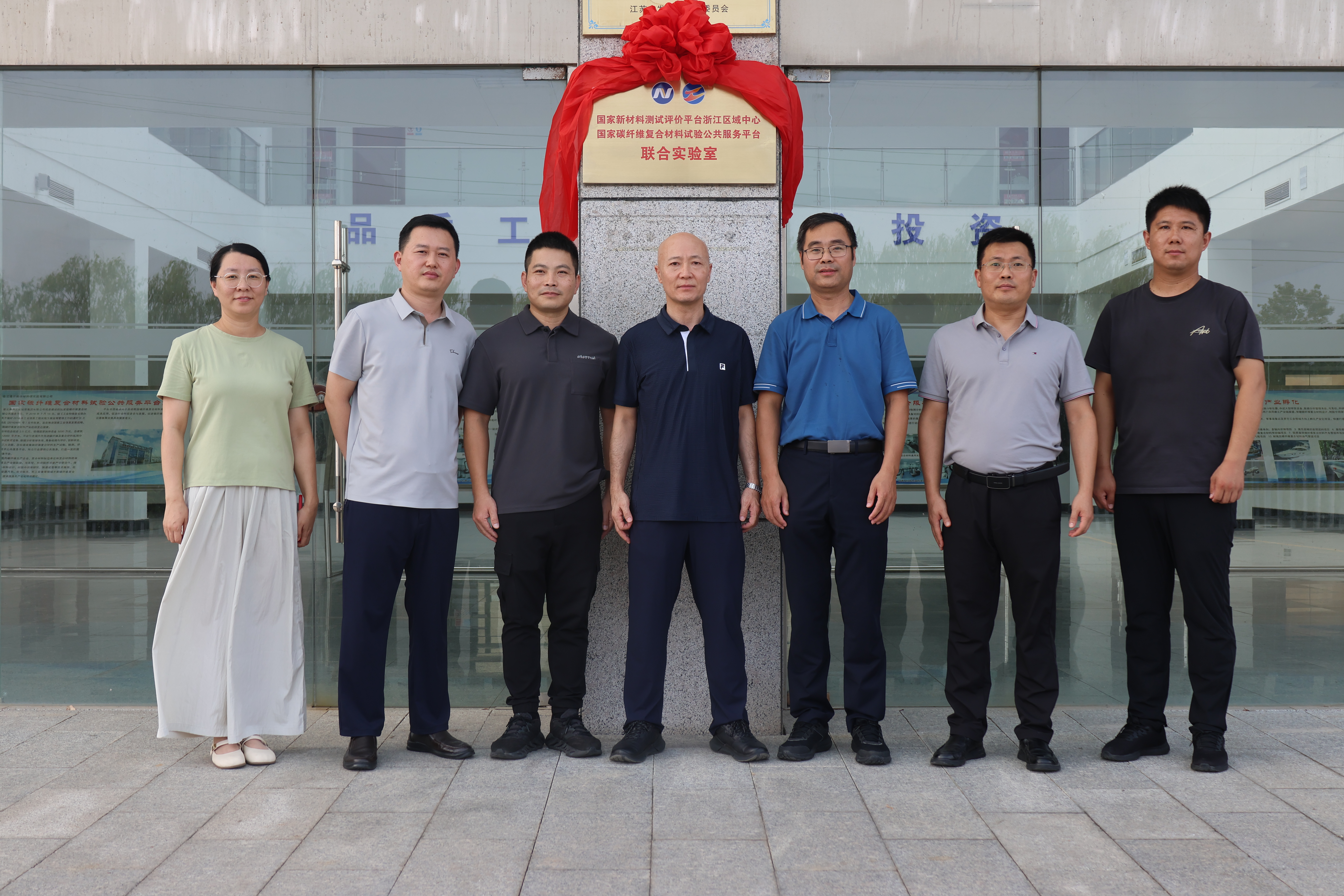 8月5日,由連云港工投纖維與復合材料檢驗檢測中心、寧波新材料測試評價中心合作共建的國家新材料測試評價平臺浙江區域中心/碳纖維復合材料試驗公共服務平臺聯合實驗室(以下簡稱聯合實驗室)揭牌儀式在纖維新材料研究院舉行。國家新材料測試評價平臺浙江區域中心總經理助理、技術總工余立架、國家新材料測試評價平臺浙江區域中心銷售總監李寅、市工信局運行監測協調處處長孟俊鋒、纖維新材料研究院董事長韓立新及公司相關領導班子成員參加了本次揭牌儀式,共同見證了這一重要時刻。