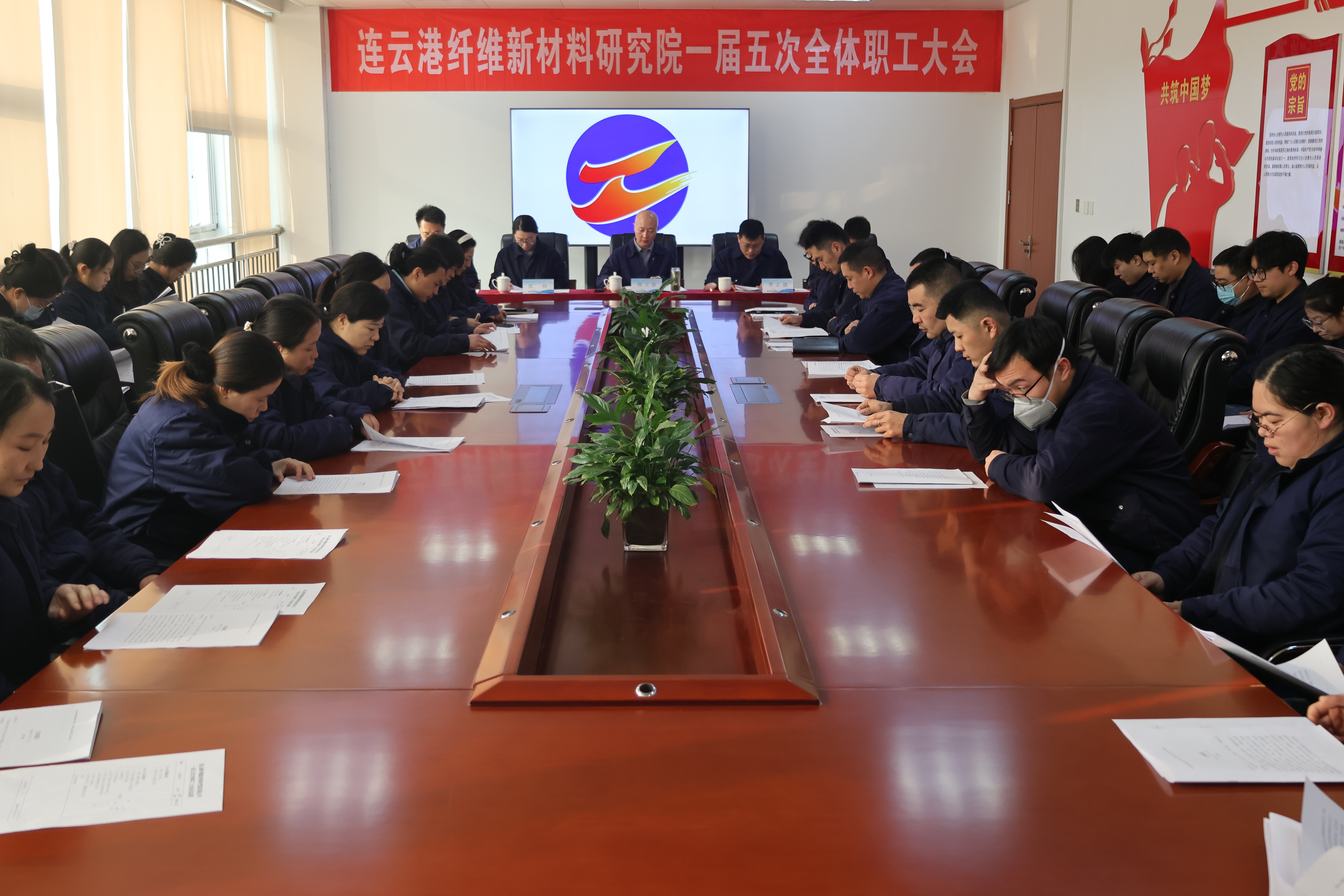 2月11日,纖維新材料研究院召開一屆五次全體職工大會。會議全面總結過往工作,部署年度任務,統一思想、凝聚共識,為公司高質量發展擘畫藍圖。大會認真聽取并審議通過院長李志強所作的《工作報告》,審議通過了有關方案,簽訂了《2026年度經理層年度經營業績考核責任書》,技術研發部部長、檢測事業部部長分別作了表態發言。會上,黨支部書記、董事長韓立新傳達集團公司二屆八次職代會會議精神,并作題為《乘勢而上開新局 凝心聚力建新功  為“十五五”開局之年高質量發展凝心鑄魂》的講話。充分肯定全體職工2025年取得的優異成績,深入分析當前發展環境的復雜性與嚴峻挑戰,系統闡述公司戰略布局與發展藍圖,激勵全體員工擔當作為、奮勇爭先。大會號召,2026年是“十五五”規劃開局啟新的關鍵之年,也是研究院攀高向新、能級躍升的攻堅之年。公司上下要深入貫徹落實本次大會精神,順勢而為、乘勢而上、聚勢而強,緊盯年度目標任務,以實干實績推動創新突破與轉型提升,奮力譜寫高質量發展新篇章。